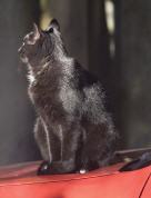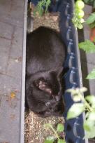 Im August 2007 entdeckten wir im Garten diese kleine schwarze Schönheit. Sie schien zu niemandem zu gehören, hatte aber offensichtlich den festen Vorsatz, uns zu adoptieren. Das hat inzwischen vorzüglich geklappt - seit Oktober 2007 teilt Miezi mit uns allen Freßnapf und Bett und ist der einzige Freigänger unserer Bande.