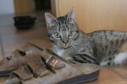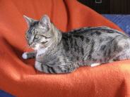Nachdem wir unseren Jülzi leider viel zu früh verloren hatten, waren wir entschlossen, wieder einem familienlosen Kätzchen ein Heim zu geben. Und ein Besuch im Bielefelder Tierheim am 20. März 2008 bescherte uns den kleinen Ozzie, der aufgrund eines chronischen Katzenschnupfens und eines inzwischen operierten Knieproblems dringend ein Zuhause suchte. Von seinem Knieproblem merkt man heute nichts mehr, wenn er wie ein Irrwisch durchs Haus tobt, aber seinen Schnupfen werden wir wohl leider nie richtig in den Griff bekommen. Seitdem läuft Wolfgang nie mehr ohne Tempotücher in der Tasche durchs Haus ;) Ach ja - böse Zungen behaupten übrigens, Ozzie kam zu seinem Namen, weil er mit seinem durch den Katzenschnupfen manchmal etwas eigentümlichen Blick immer etwas bekifft aussieht. Aber eigentlich wollten wir damit nur unterstreichen, dass er eine Fellfärbung wie ein kleiner Ozelot hat, unser Özzel.