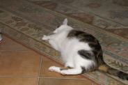 14.40h - Juli rennt lautstark brummend mit seiner Minze-Maus im Maul durchs Haus. Hin und wieder wirft er sie hoch in die Luft, um sich gleich wieder darauf zu stürzen und brummend weiterzulaufen. Sterni hat sich derweil vorsichtig an das von Juli unbeobachtet zurückgelassene Kissen herangeschlichen, nimmt einen tiefen Atemzug und fängt an, sich im Kissen zu wälzen. Mäusi guckt weiter dumm und Pauli wälzt sich immer noch verzückt mit seinem Kissen. Arnold sabbert weiter.